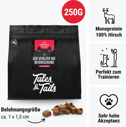Tales & Tails – Ich verlier die BeHIRSCHung 250g Fleisch Leckerli für Hunde aus 100% Hirsch