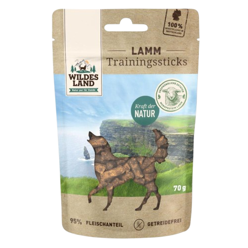 Die Trainingssticks Lamm sind ein natürlicher und artgerechter Snack für Ihren Hund. Sie haben einen hohen Fleischanteil von 95 % aus nur einer Proteinquelle. Gefertigt ohne Getreide und ohne Gluten sind sie auch für ernährungssensible Hunde geeignet.